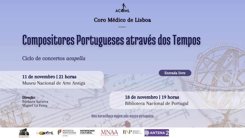 A Associação Coro e Orquestra Médicos de Lisboa vem por este meio divulgar o Ciclo de Concertos acapella do Coro Médico de Lisboa, “Compositores Portugueses através dos Tempos”.